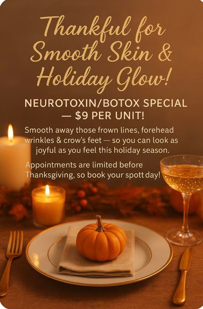 Smooth away wrinkles and rejuvenate your skin with our Botox promotion! Get a lip flip/ DAO/ or Chin Botox for only $80 (originally $95). Basic Botox for only $9 per unit! Our skilled injectors will help you achieve a refreshed and youthful appearance. Call 512-736-0611to schedule your consultation.